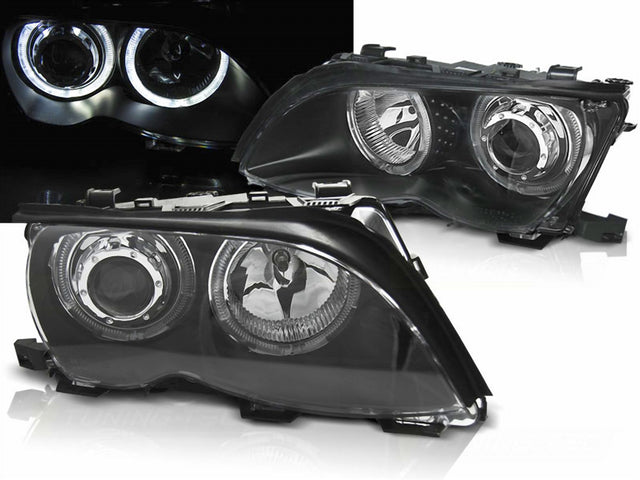 LED Angel Eyes Scheinwerfer Set schwarz für BMW E46 2001-03.2003 Limo Touring