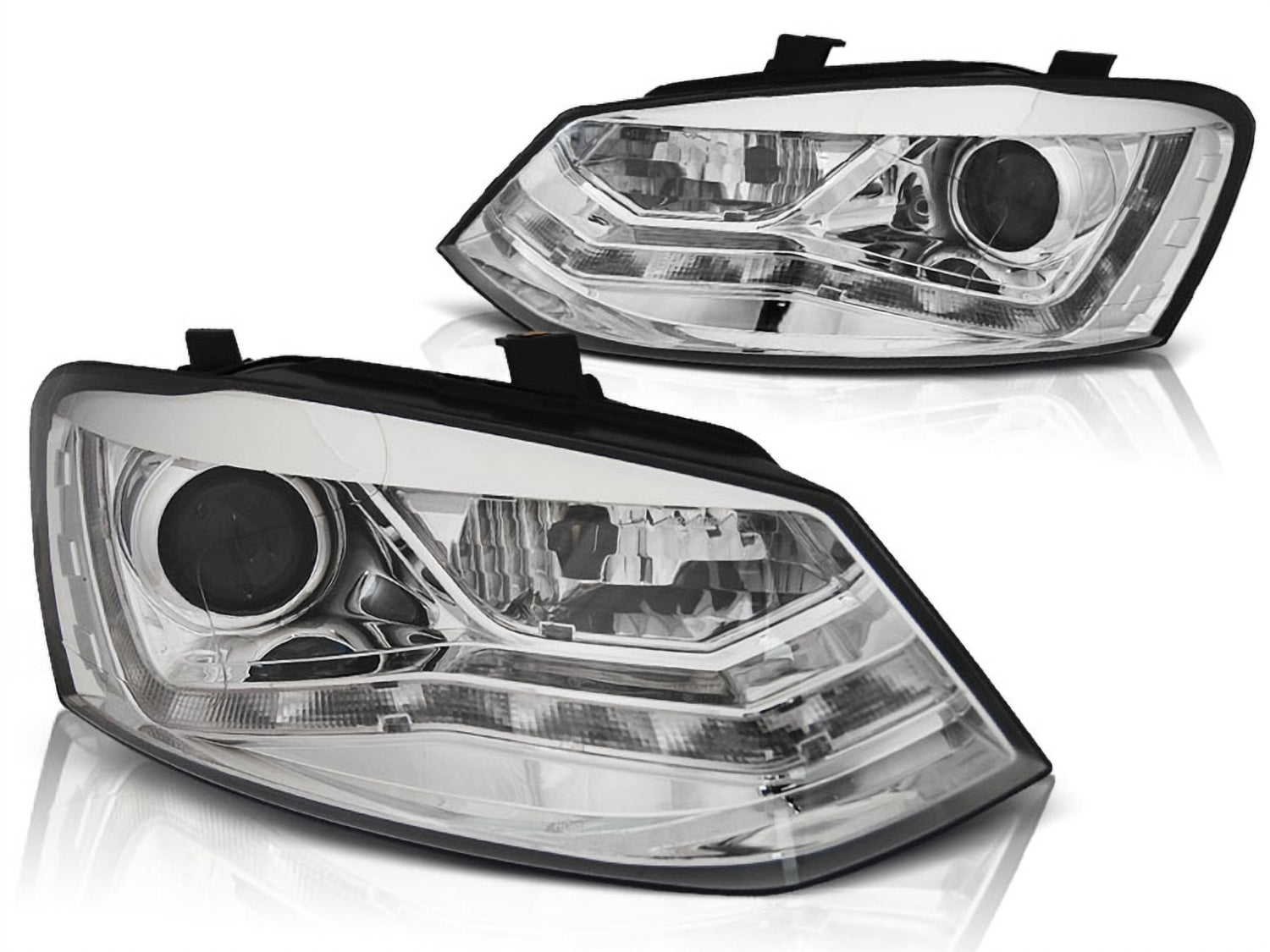 Das Scheinwerfer Set beinhaltet beide Frontscheinwerfer – links und rechts – und bietet eine abgestimmte Optik für die gesamte Fahrzeugfront. Durch die Kombination aus LED Standlicht, Chrom Optik und moderner Technik verwandelst Du Deinen Polo in einen echten Blickfang auf der Straße.