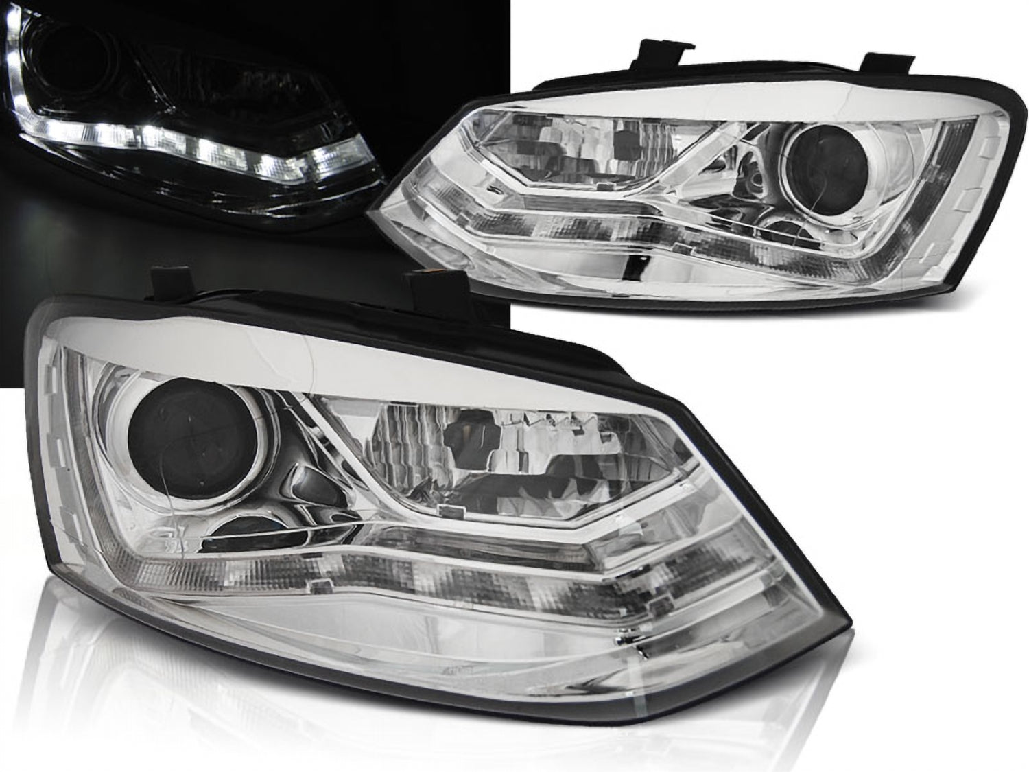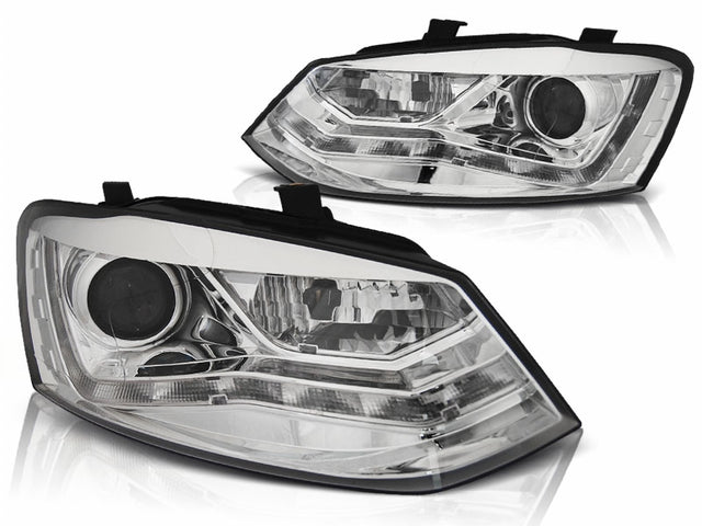 LED Scheinwerfer Set Chrom für VW Polo 6R 2009–2014 mit LED Standlicht