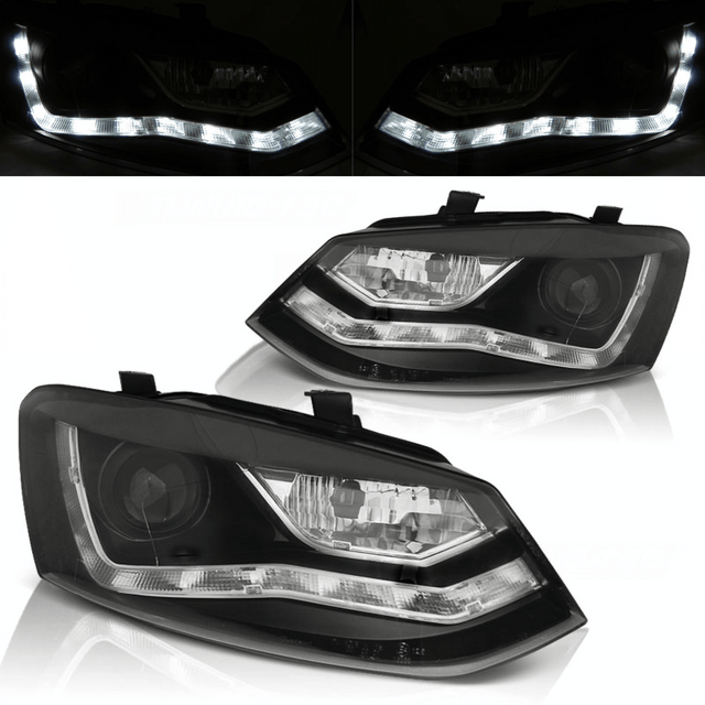 LED Scheinwerfer Set Schwarz für VW Polo 6R 2009–03/2014 mit LED Standlicht