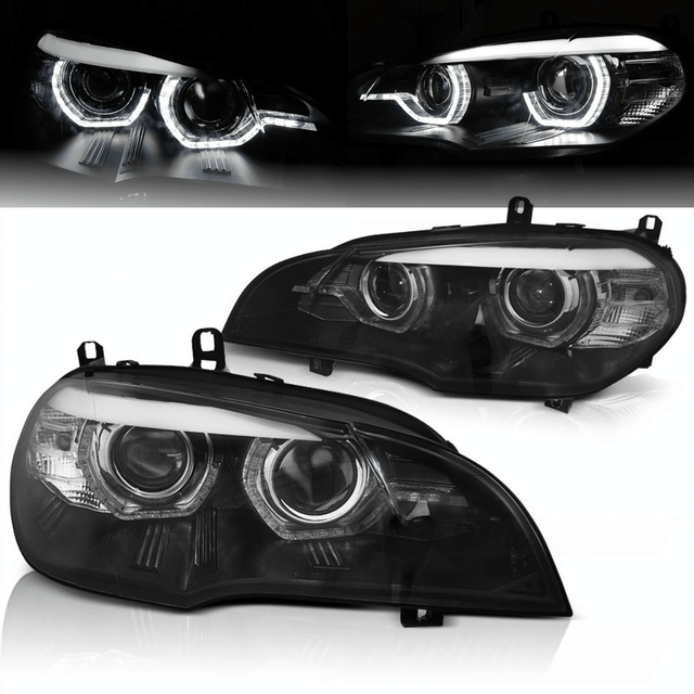 Sichere Dir jetzt die Xenon Frontscheinwerfer in Schwarz mit Angel Eyes für Deinen BMW X5 E70!