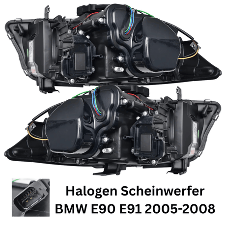 3D LED Angel Eyes Scheinwerfer Set Schwarz für BMW 3er E90 E91 2005–2008