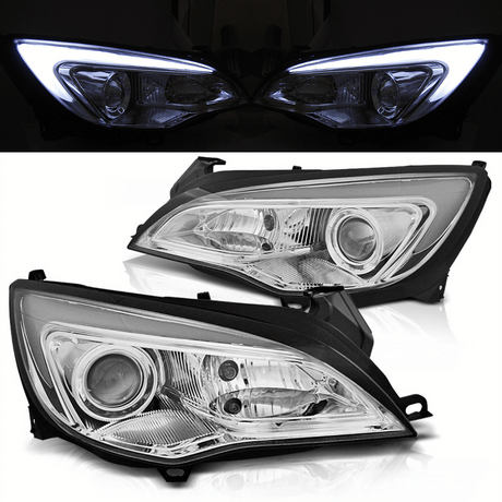LED LightTube Scheinwerfer Set für Opel Astra J 2010–2015 Chrom mit Tagfahrlicht
