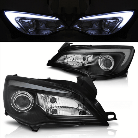 LED LightTube Scheinwerfer Set für Opel Astra J 2010–2015 Schwarz mit Tagfahrlicht