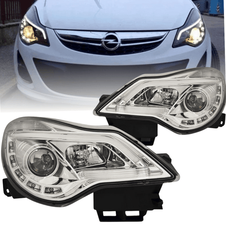 Scheinwerfer Set mit LED Tagfahrlicht für Opel Corsa D 2011–2014 Chrom