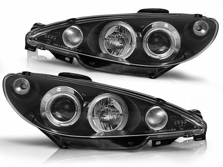 Angel Eyes Scheinwerfer Set Schwarz für Peugeot 206 1998–2002 mit Halo-Ringen