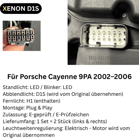 Xenon Scheinwerfer Set Schwarz für Porsche Cayenne 9PA 2002–2006 mit LED Standlicht & LED Blinkern