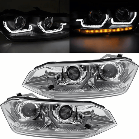 Scheinwerfer Set Chrom für VW Polo VI 2G 2017–2021 mit LED Tagfahrlicht & Dynamischer Blinker