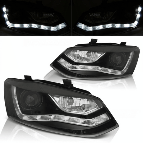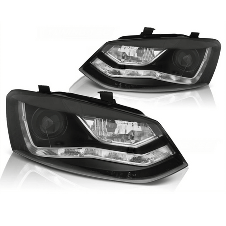 LED Scheinwerfer Set Schwarz für VW Polo 6R 2009–03/2014 mit LED Tagfahrlicht