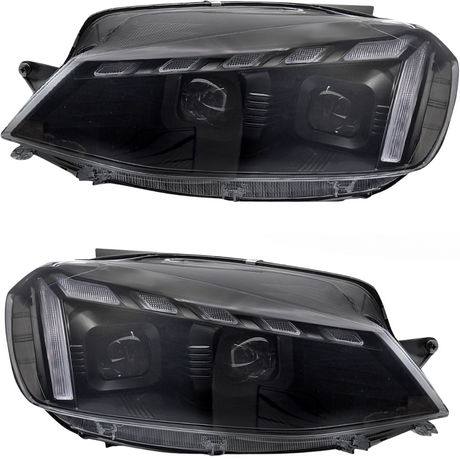 Halogen Scheinwerfer Set Schwarz für VW Golf 7.5 VII 2017–2019 mit Welcome Light | LED Tagfahrlicht