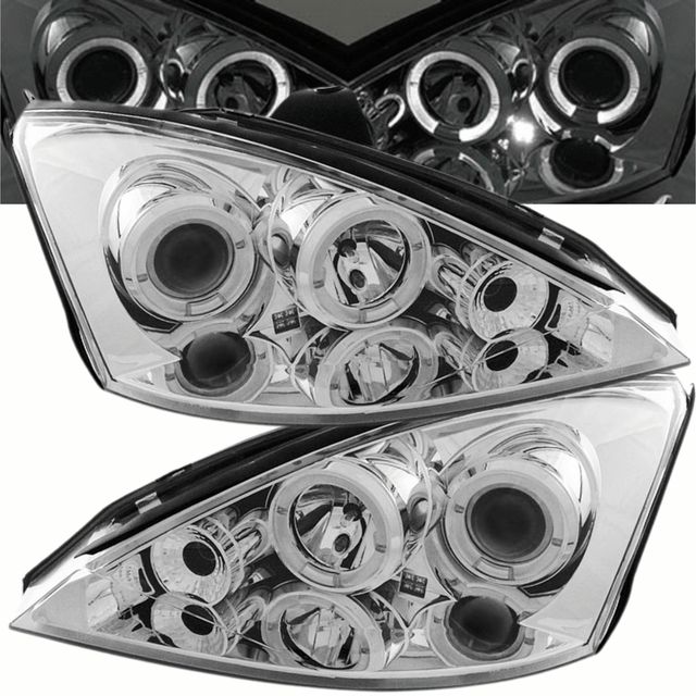 LED Angel Eyes Scheinwerfer Set in chrom für Ford Focus 10.1998-10.2001