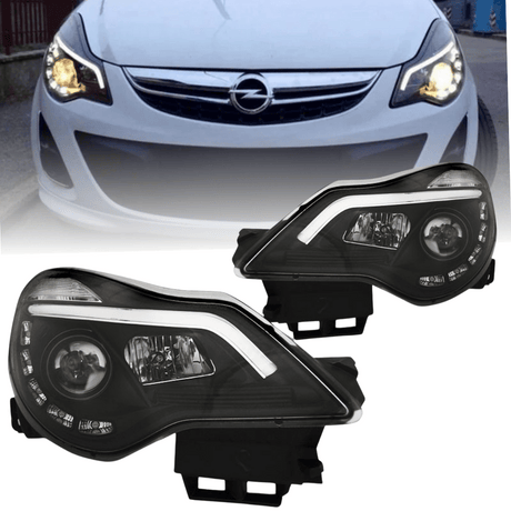 Led Tagfahrlicht Scheinwerfer in schwarz für Opel Corsa D Facelift ab 2011