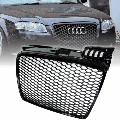 Sport Kühlergrill Front Waben Logohalter für Audi A4 B6 10.00-10.04 glanz schwarz