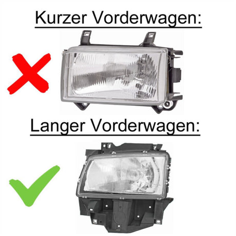 Beim T4 gibt es Ausführungen mit kurzem und langem Vorderwagen. Wähle die Scheinwerfer passend zu Deinem Frontblech/Modelljahr; die Produktbezeichnungen helfen Dir bei der Auswahl.