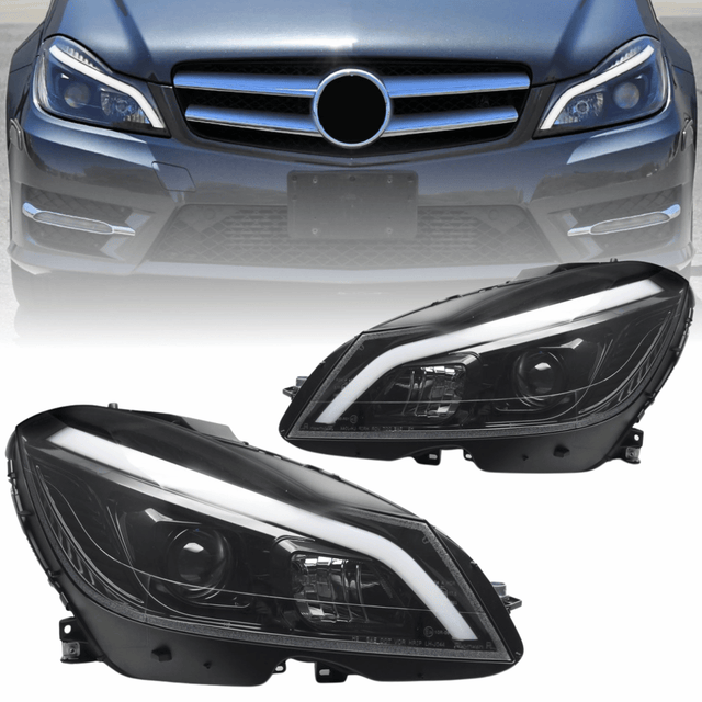 LED Scheinwerfer Set Hochglanz Schwarz für Mercedes C-Klasse W204 2011–2014 mit LED Tagfahrlicht
