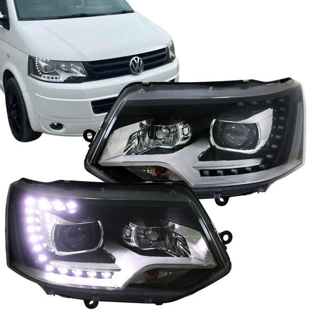 LED Tagfahrlicht Scheinwerfer Set für VW T5 GP 2009-2015 schwarz