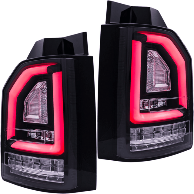 Mit ihrem Black Design setzen diese Heckscheinwerfer einen sportlich-eleganten Akzent. Dank Lightbar-Technik und sequentiellem Blinker erhält Dein Transporter eine moderne Lichtsignatur, die Sicherheit und Style perfekt verbindet. Mach Dein Auto zum Blickfang auf jeder Straße!