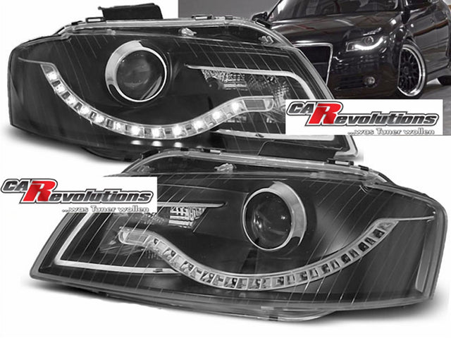 Led Scheinwerfer Für Audi A3 8P 03-08 (auch für Sportback jedoch nicht 8PA) mit LED Leiste als Tagfahrlicht-Optik in black