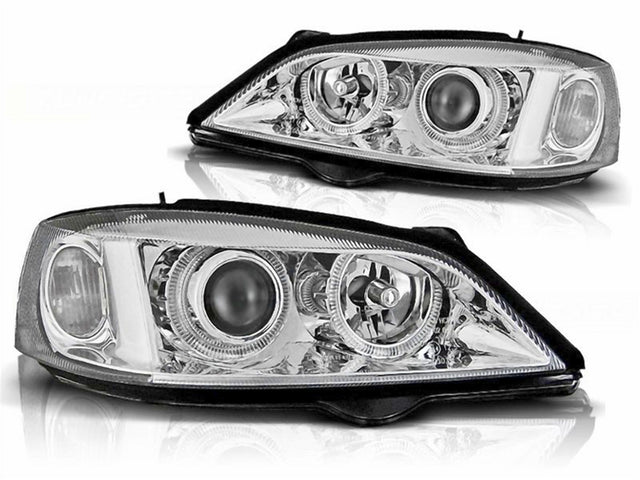 Scheinwerfer für Für Opel Astra G 1998-2004 Angel Eyes chrom