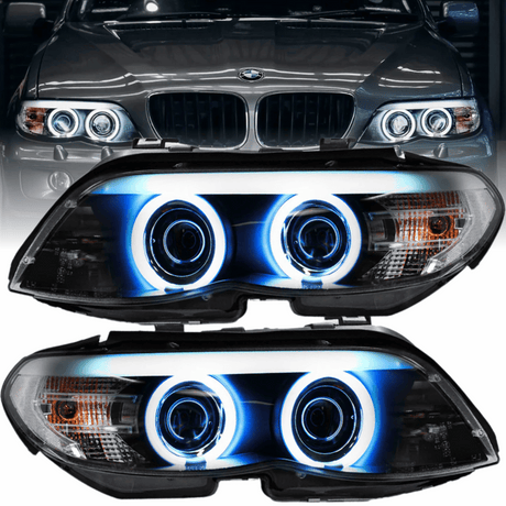 Xenon Scheinwerfer Set Schwarz für BMW X5 E53 11/2003–2006 mit CCFL Angel Eyes