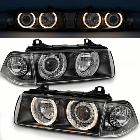Angel Eyes Scheinwerfer Set für BMW 3er E36 Limousine Touring 12/1990-08/1999 schwarz