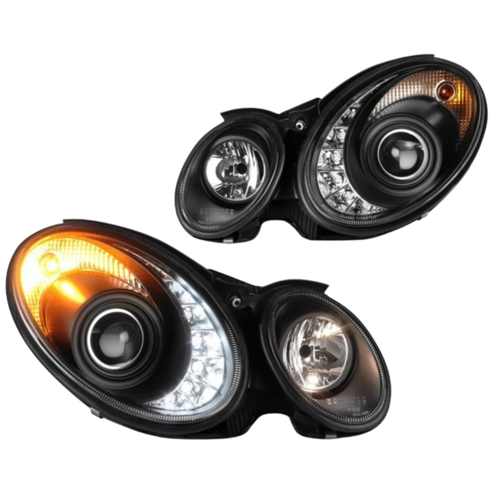 Die Frontscheinwerfer sind speziell für die Halogen-Ausführung des W211 VorMOPF konzipiert und nicht kompatibel mit Xenon-Scheinwerfern. Das Set umfasst zwei Scheinwerfer – links und rechts – und ist dank Plug & Play Montage einfach zu installieren. Mach Dein Auto zum Blickfang und genieße die perfekte Symbiose aus Technik und Design.